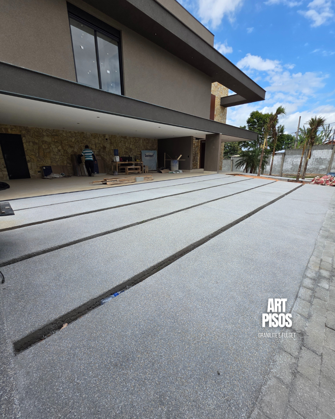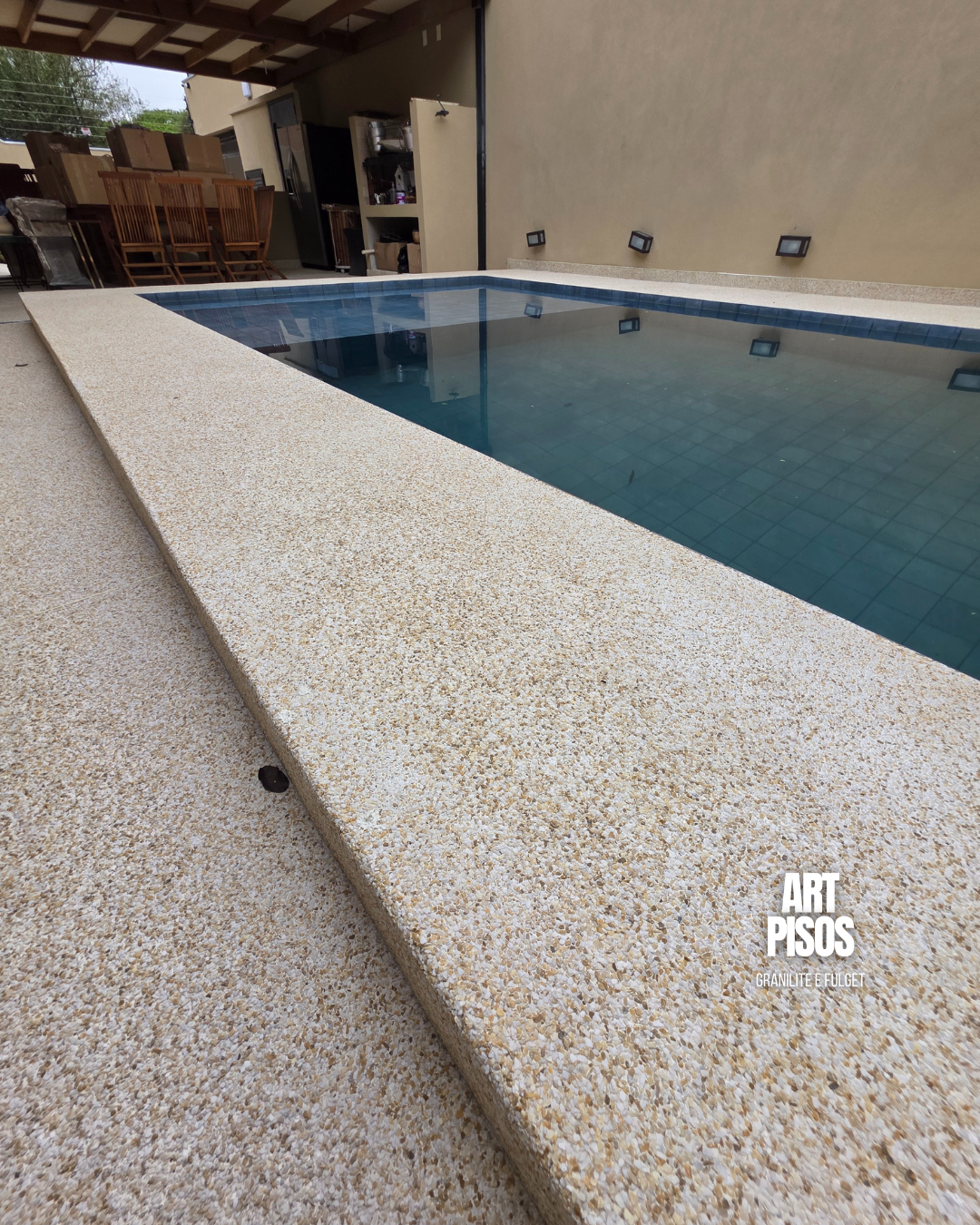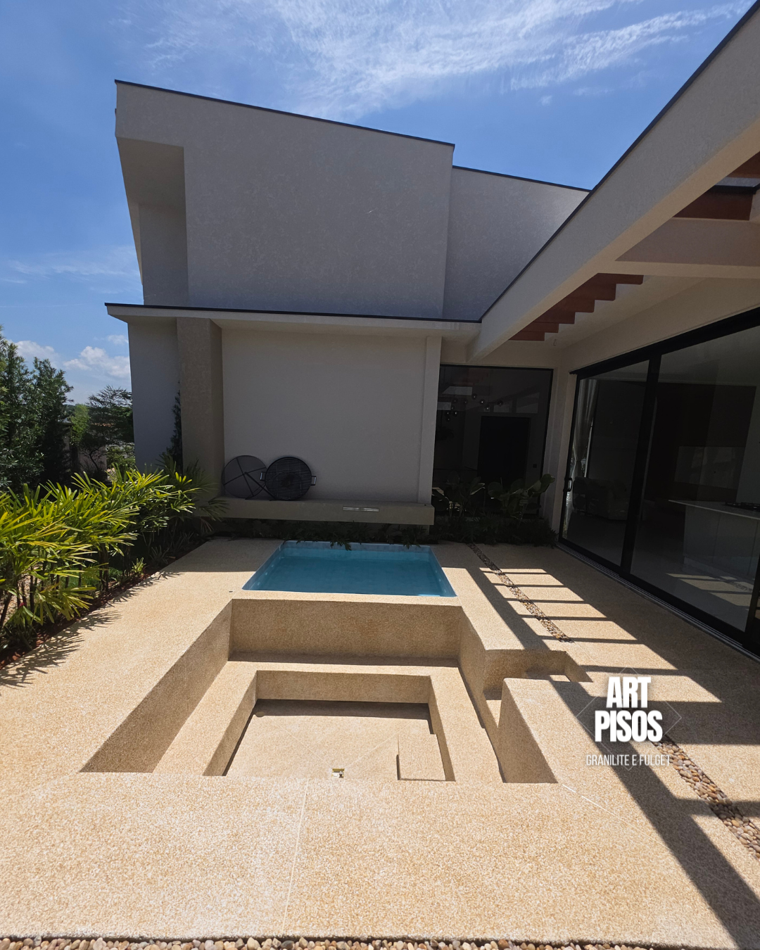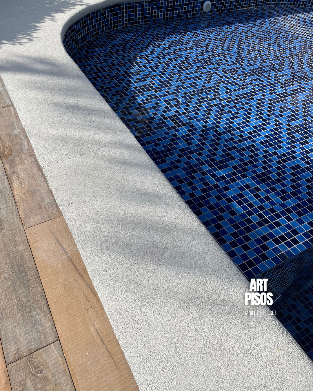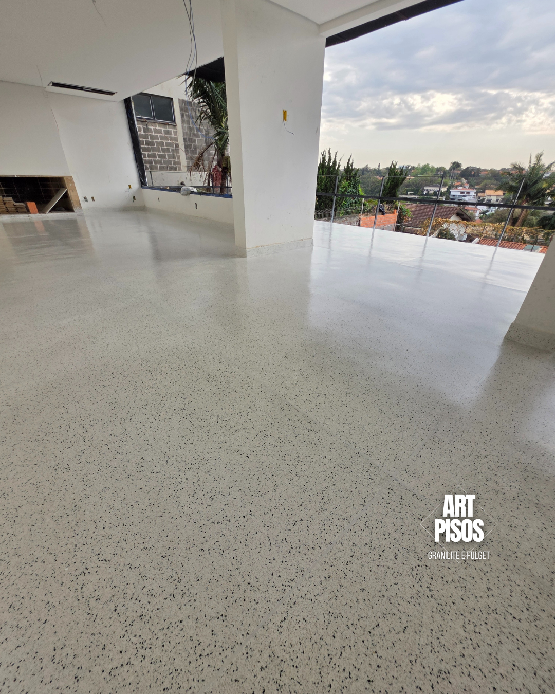 Feito de uma mistura de cimento com pedrinhas de mármore, quartzo e granito, ele oferece uma superfície lisa, resistente e com um toque sofisticado, ideal para áreas internas e externas.